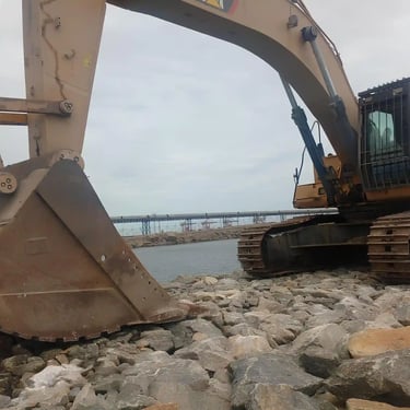 ROCK BOULDERS EXPORTING WITH BARGE AND TUG BOAT